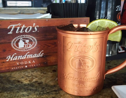 Besides being a mouthful to pronounce, this kickin’ creation packs a spicy punch! Although the ingredients are few, Titos handmade vodka, vermouth, and pepperoncini juice, they combine to make a BIG statement. It’s certainly a must-try…but be warned. Just sayin’.