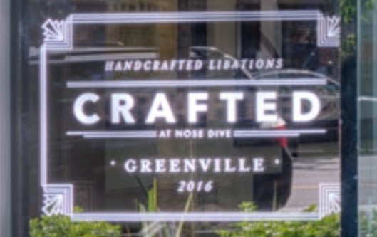 The Main Street scene here in Greenville is hoppin’ these days. The warmer weather is coaxing folks out and about, and the doors of some of our favorite establishments are thrown wide open – just begging passersby to come in and sit a spell. Right at the heart of it all is Nose Dive with its “windows on the street” and a crafty little secret up above…the second floor bar, “Crafted”.