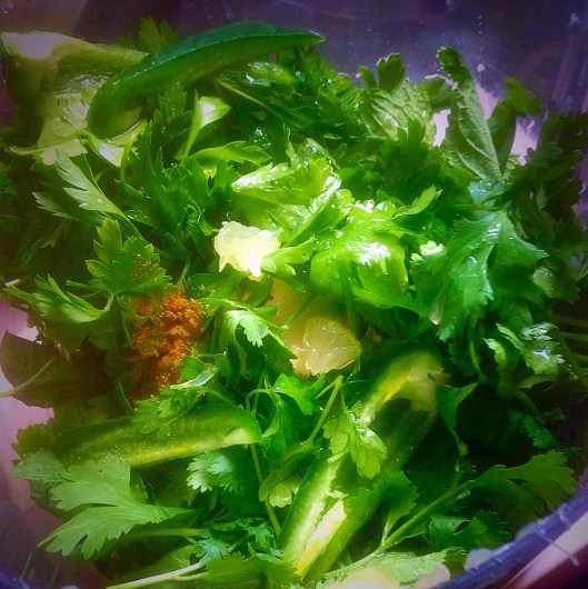 Now it’s time to make the green Harissa…the bursts of flavor have arrived!!!
