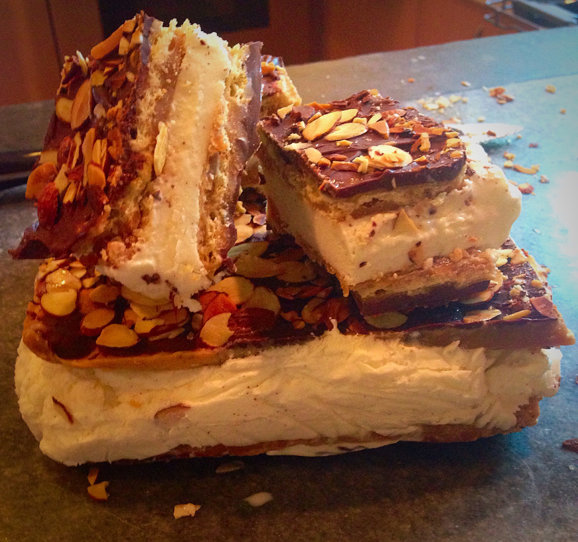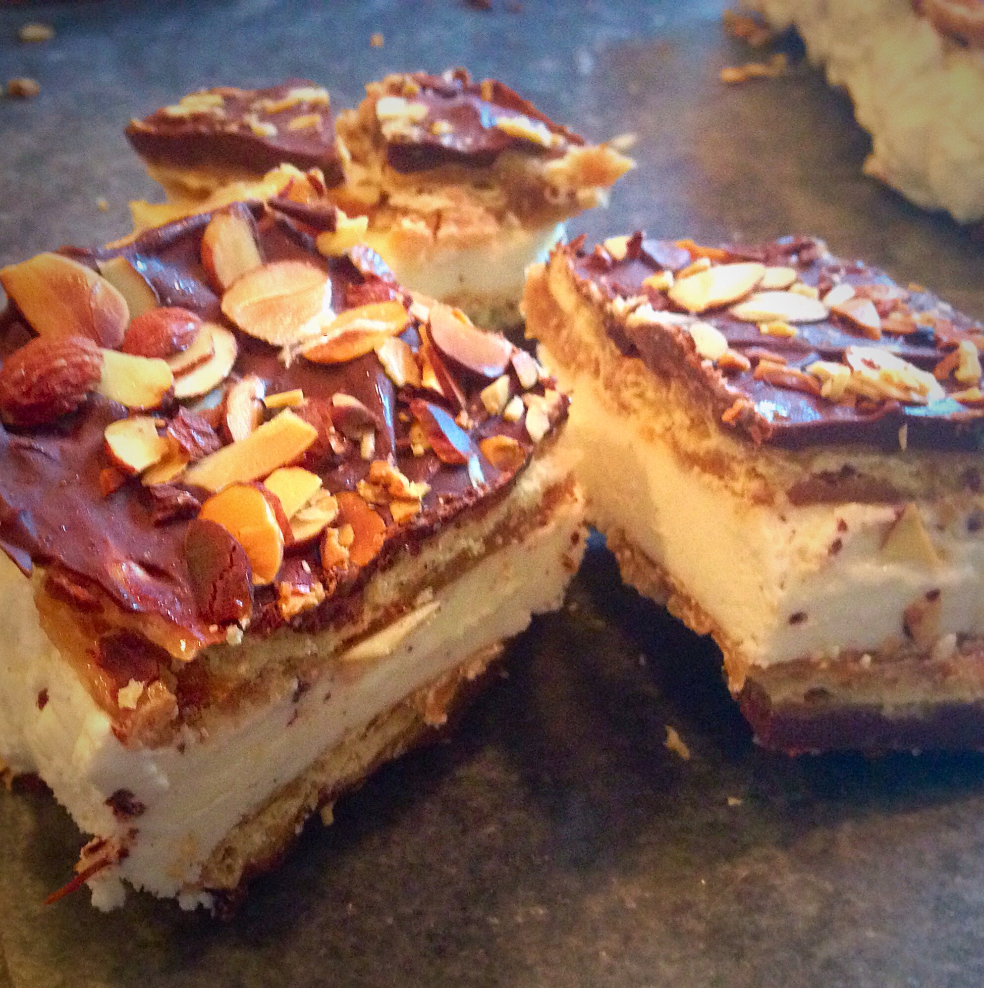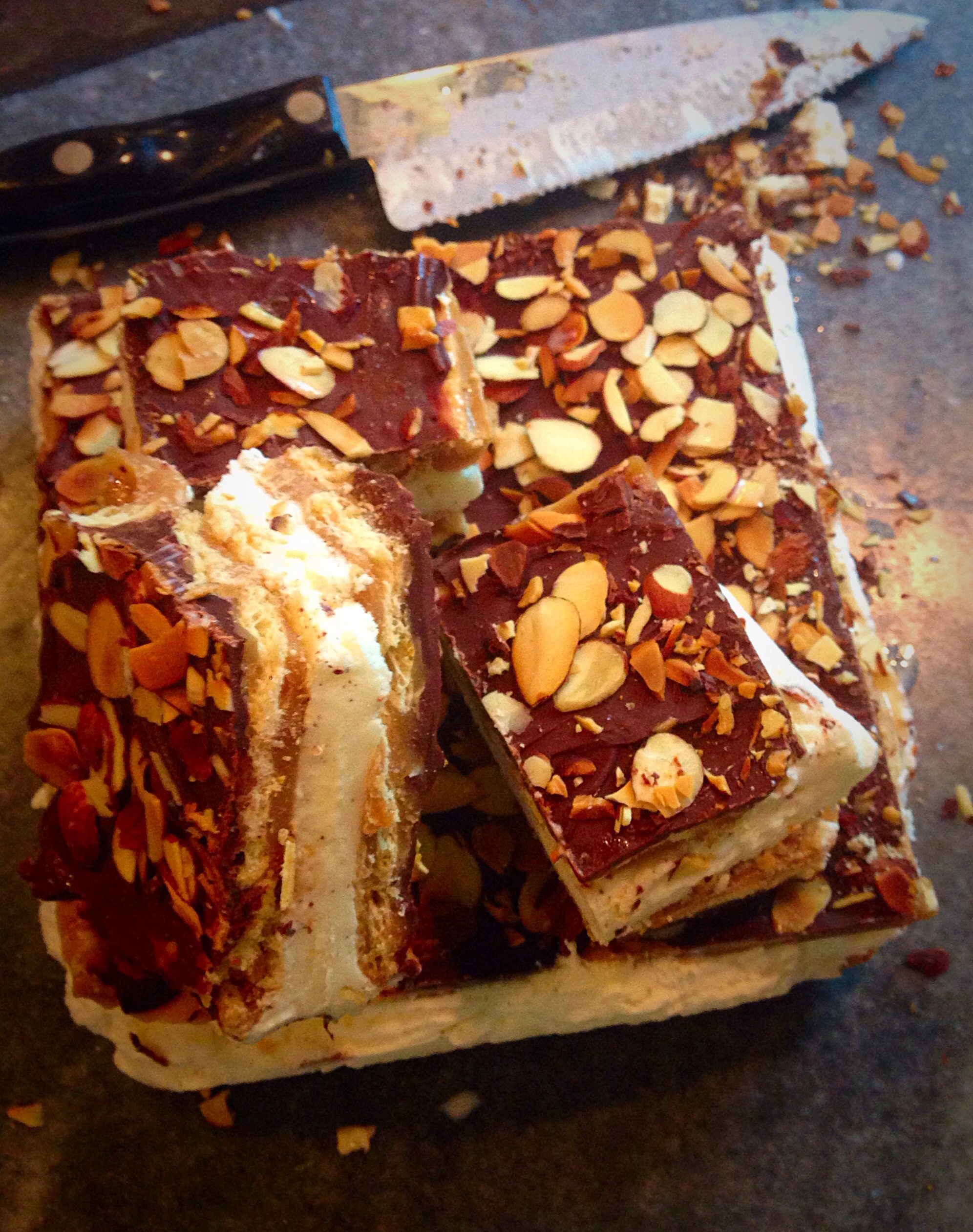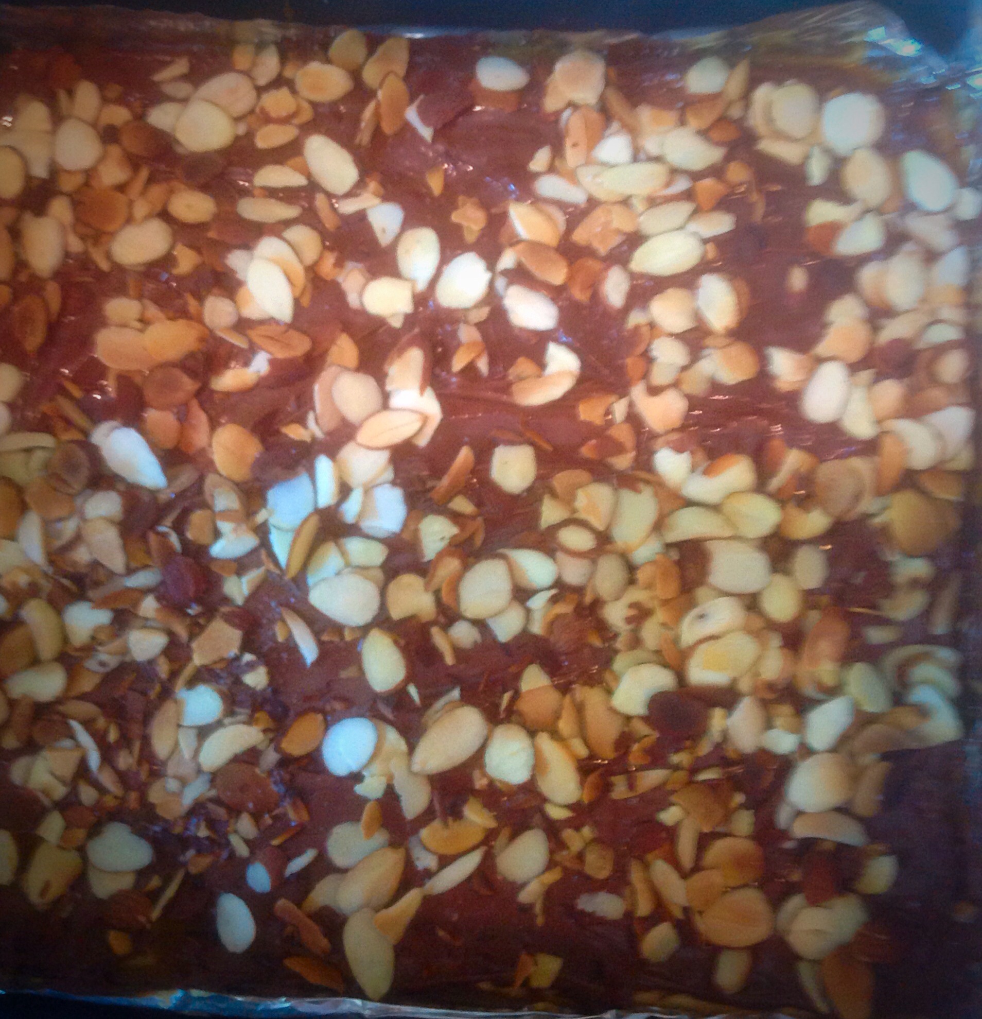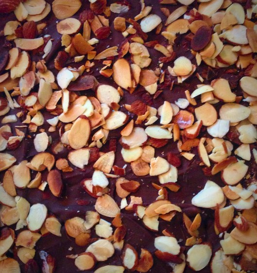 Time to add the chocolate and nuts (optional) and spread about,