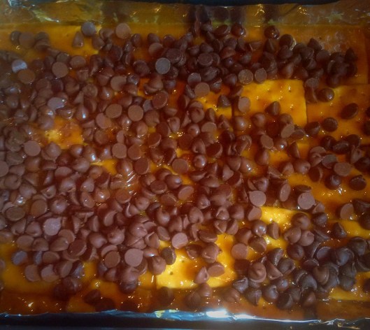 Pour it over zee saltines, and bake in oven for a bit…