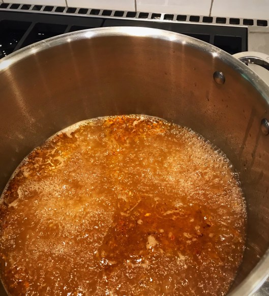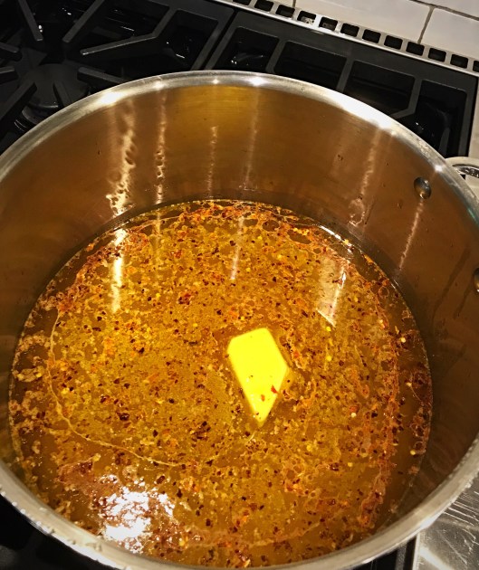 1 Heat oven to 475° F. Bring wine, oil, salt, lemon juice, butter, red pepper flakes, sugar, bay leaf, and 8 cups water to a boil in a large pot.