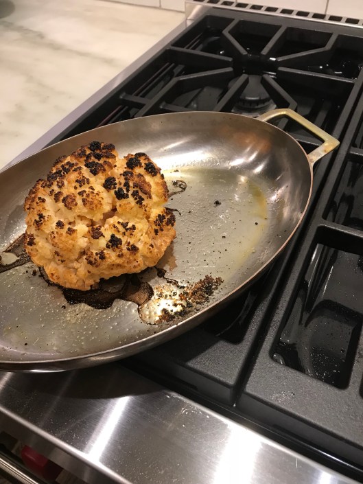 Thanks to one our favorite websites by the name of Food 52 we were reminded of one of our fave cauliflower showstoppers – whole cauliflower with whipped goat cheese