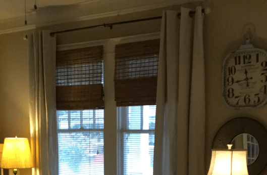 Inexpensive bamboo shades from Home Depot can warm up a window and disguise the plastic blinds favored by college-town landlords.