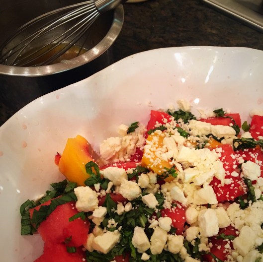 We’ve seen versions of watermelon/feta salads and have tried many over the years, but this one creation over Labor Day weekend really rang some belles!