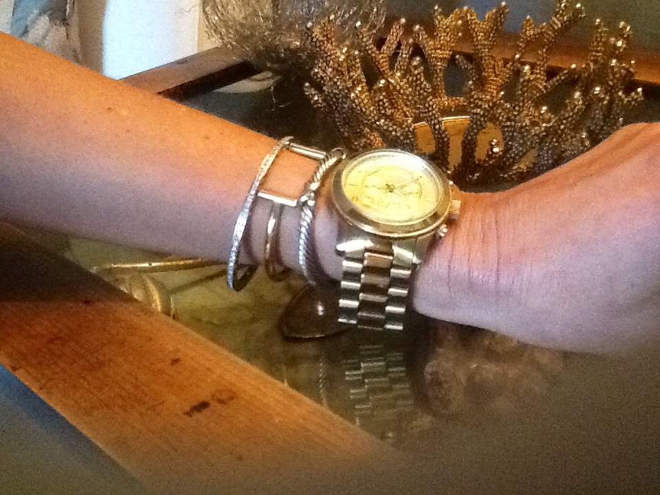 the full-on race-to-the-elbow…shown here with watch from Michael Kors, a selection from David Yurman, and a gold bangle. Holla!