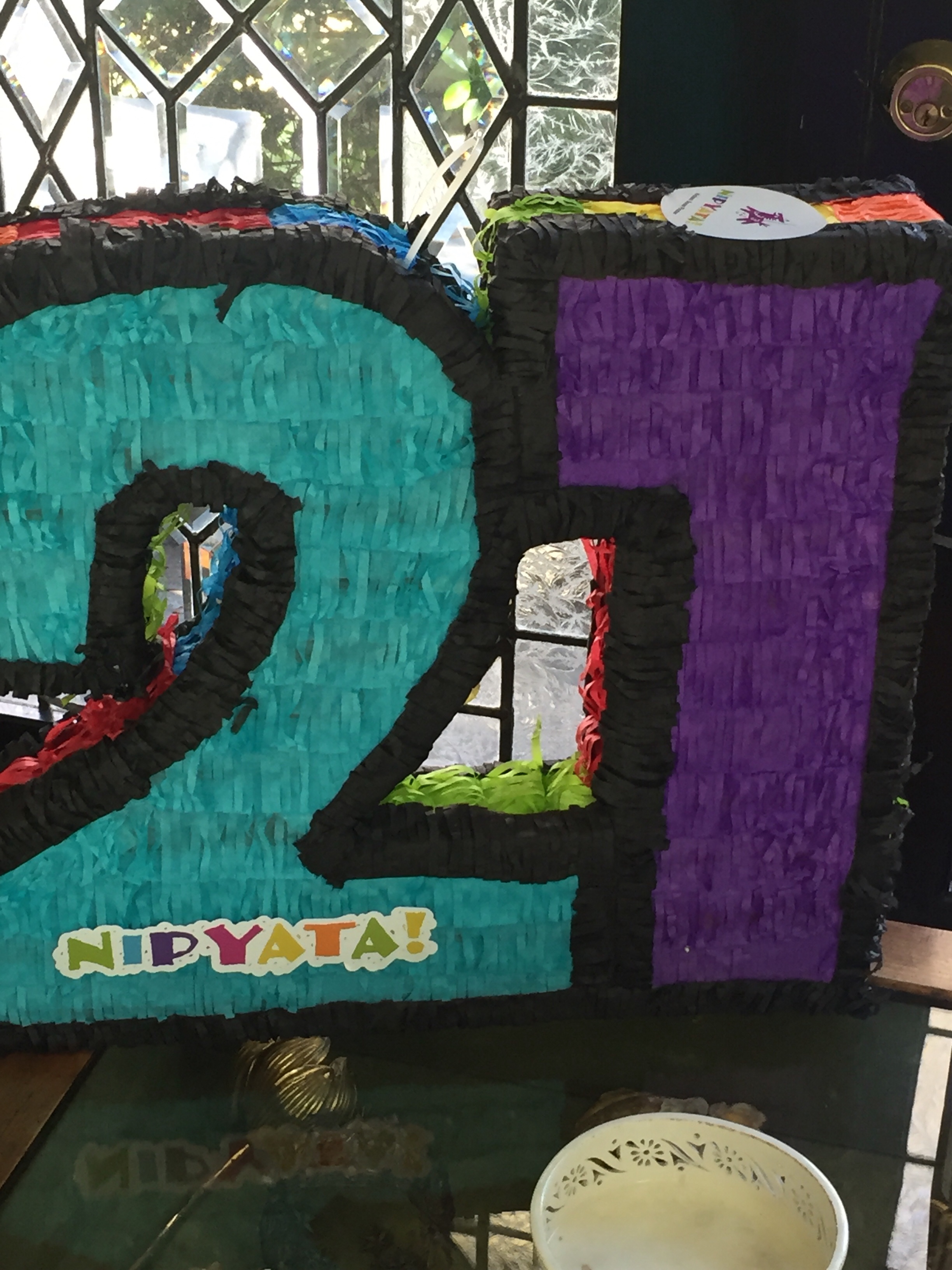And oneof those gifts was a Piñata from Nipyata in the shape of a 21.
