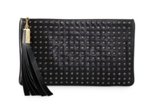 (Top to bottom: B Brian Atwood Lana rhinestone-studded clutch, Comme des Garçons medium clover-stamped zip pouch – available at http://www.saksfifthavenue.com)