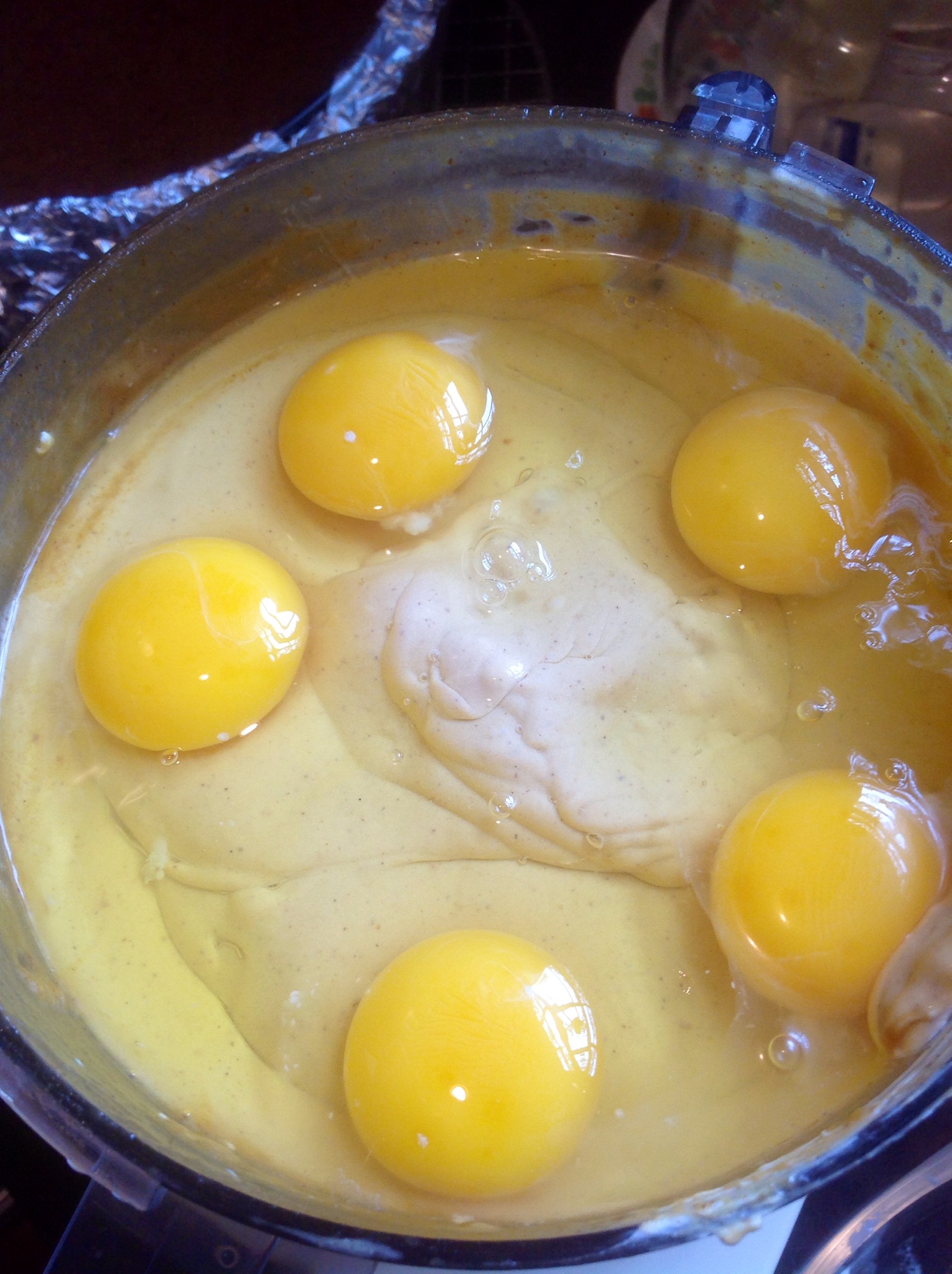 We re-peeped and it went in at 500 for a very few minutes and then we hit the broiler (one rack further down this time ) until gently browned, The teen belles entered en masse and inhaled giving their thumbs up of approval.