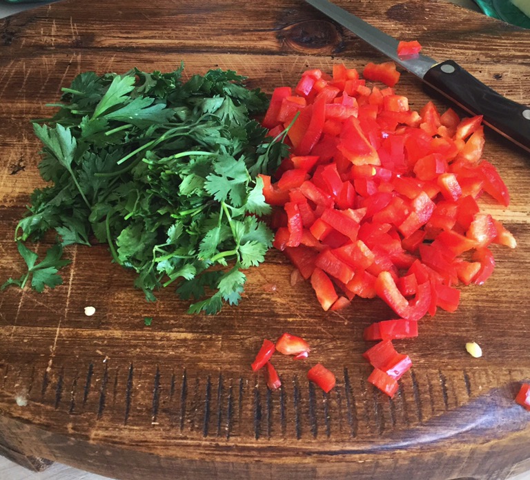 1 red bell pepper, chopped, and 1/4 cup chopped parsley