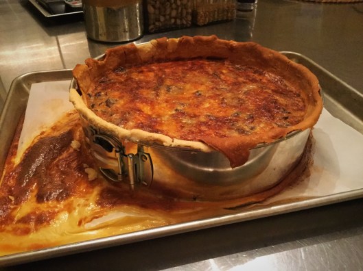 And you might get something that looks like this disappointing mess!!  We were convinced we had failed miserably!!  The crust apparently sprang a leak despite our best efforts and following Smitten Kitchen’s tips very carefully.  We figured we were just no match for this endeavor.  We were just not worthy!  Or were we??…