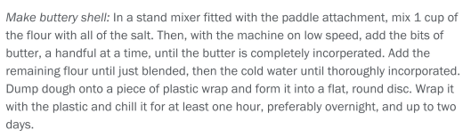 We chose to par-bake our shell which yields an amazingly browned, flaky crust.  This is done at 325 degrees for about 30 minutes.  Remove beans/rice/coins and bake another 10 minutes for good-measure browning.