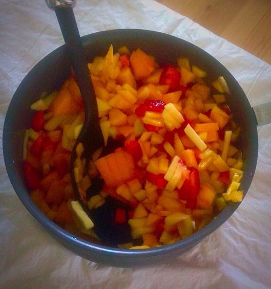 We re-peeped and it went in at 500 for a very few minutes and then we hit the broiler (one rack further down this time ) until gently browned, The teen belles entered en masse and inhaled giving their thumbs up of approval.