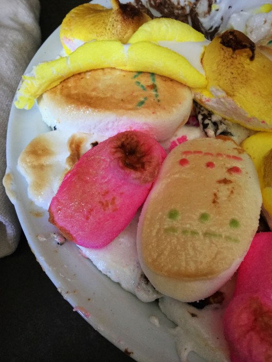 Thankfully we are partial to burnt peeps and we can’t show a pic because we ate the top right off in mere seconds.