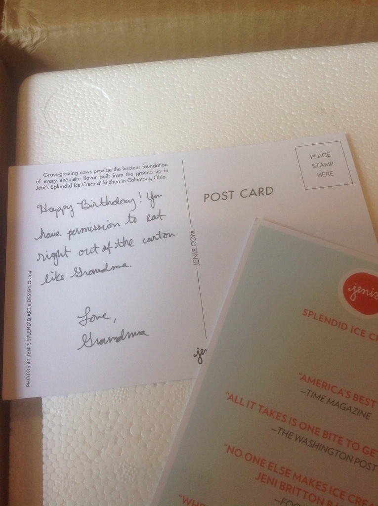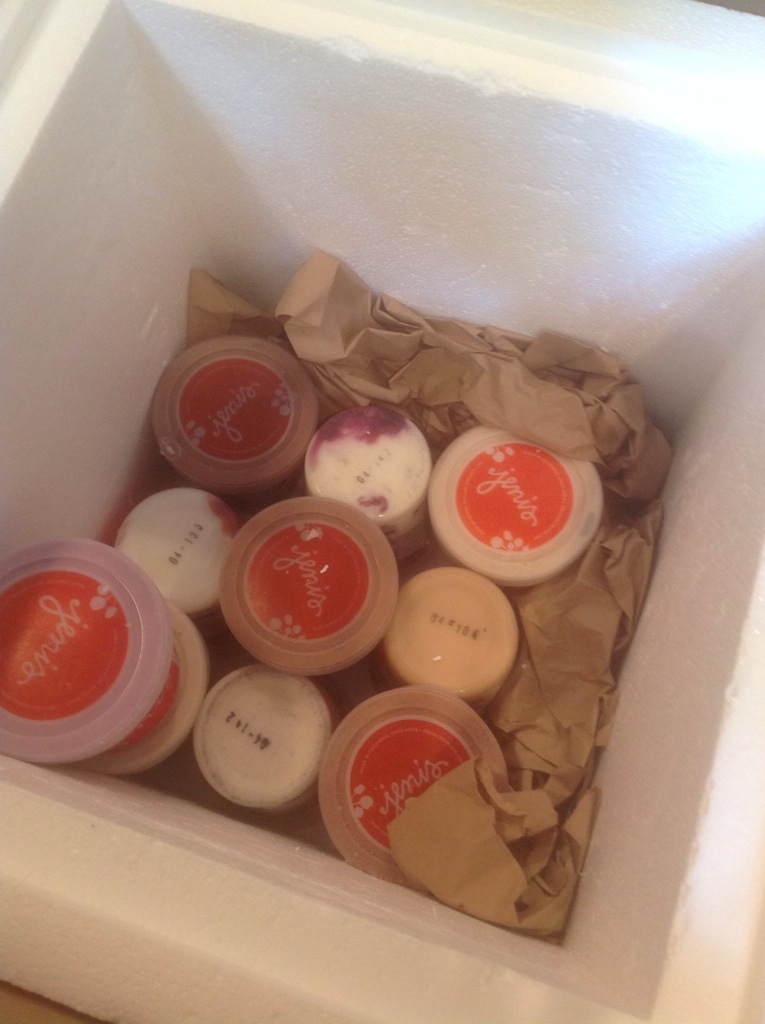 Now this is only a smidgen of all the flavors that jeni’s offers. They have a couple of store fronts, are available in some grocery stores, but best of all will arrive right at your door!!