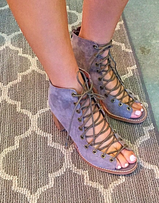 These shoes look so sexy and edgy, yet they are comfortable with a great heel height. They look like nothing on the shelf, so it took some convincing for us to even try them…but when we did, we loved them so much we walked right out wearing them. Poor junior belle has to wait on this pair because we decided we needed to take a lap or two in them!! They also come in a very sexy black…