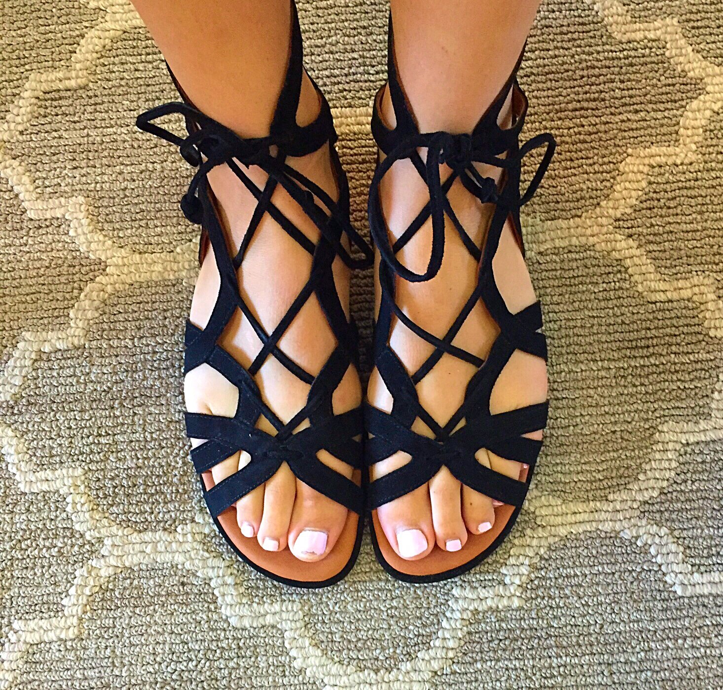 Next up is the cutest pair of gladiators you ever did see…and for those of you with longer feet, these actually make them look dainty! They zip up the back, so they are super-easy to throw on, and they transition perfectly from summer to fall when it’s still hot but you can’t get away with a summer skimmer.