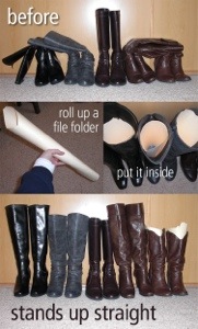 This particular husband tended to wear the same 2-3 t-shirts over and over while insisting that “someone” was “stealing” his favorites. Well, enter this brilliant idea (must give credit to a Pinterest pinner). Storing the shirts in the drawer with the shirt-front visible allows the husband to do a quick inventory…as often as he pleases…to be sure all of his beloved shirts are present and accounted for. Now everyone can rest peacefully 😉