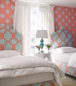 The touches of coral are on the headboard, bed skirt and pillows. And what southern belle wouldn’t have a monogram set about subtly (or not so subtly in this case)? Love the idea of making the monogram in coral for a proper “pop”.