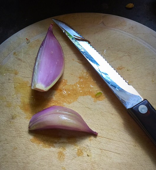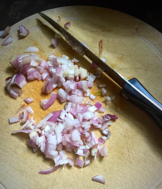 And…for the final step – heat about an inch of canola oil in skillet. Fry shallots until golden. Add shallots to salad…